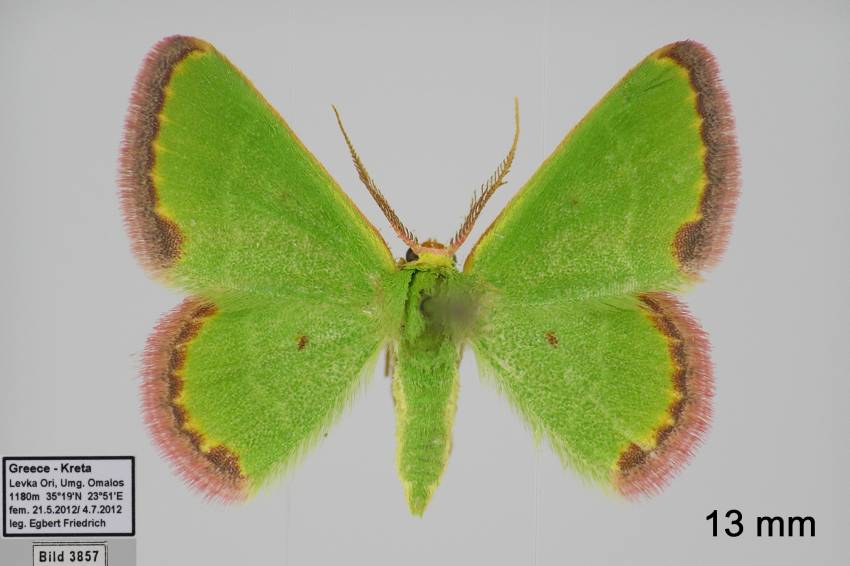 9: ♂, Griechenland, Kreta, Levka Ori, Umg. Omalos, 1180 m, Weibchen am 26. Mai 2012 am Licht, e.o. 10. Juli 2012 (leg., cult., det. & fot.: Egbert Friedrich)Forum