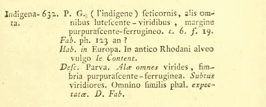 - Phalaena (Geometra) indigenata de Villers, 1789 [Originalkombination]