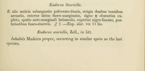 - Eudorea scoriella Wollaston, 1858 [Originalkombination]