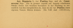 • Erstbeschreibung: Staudinger, O. (1892): Neue Arten und Varietäten von Lepidopteren des paläarktischen Faunengebiets. — Deutsche entomologische Zeitschrift Iris 4 (2): 224-339, pl. III-IV.