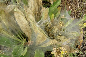 Die Flugzeit des Falters beginnt je nach lokalem Klima im April oder Mai und dauert im Gebirge bis Anfang Juli. Die Raupen leben in einem Gespinst und überwintern halb erwachsen. Sie ernähren sich vom Weißen Schuppenkopf (Cephalaria leucantha), Knautia (Knautia arvensis). Nach der Überwinterung zudem von Skabiosen (Scabiosa spp.) und lokal weiteren krautigen Pflanzen.