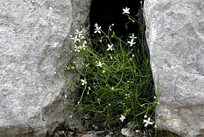 1: Moos-Nabelmiere (Moehringia muscosa): Italien, Friaul, Interneppo, Mt. Festa, 7. Mai 2005 (Foto: Helmut Deutsch), det. Helmut Deutsch