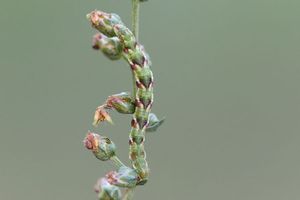 - drei keulenförmige, schuppige Cornuti, die am Grunde verbunden sind (1)