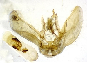 1: Genitalpräparat des unter Lebendfalter 1 abgebildeten ♀, Daten siehe oben (Präparation & Mikro-Foto: Peter Buchner)