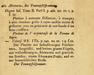 „abies die Tanne, als Nahrungspflanze der Raupe.“