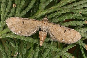 Gegenüberstellung lebender Falter von Eupithecia assimilata und Eupithecia absinthiata [hier]