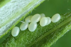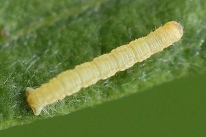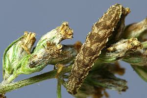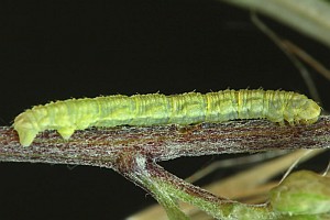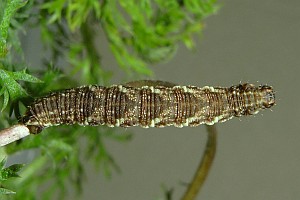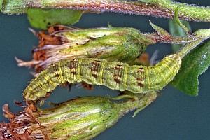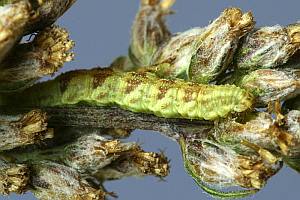 1-2: vorletztes Stadium (ca. 9-10 mm), Deutschland, Hamburg, Eidelstedter Feldmark, an Beifuß (Artemisia vulgaris), 14. August 2010 (leg. & Studiofotos: Renate Ridley), det. Heidrun Melzer nach L5-FotoForum