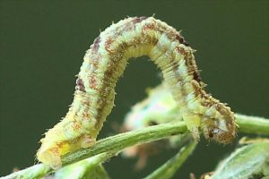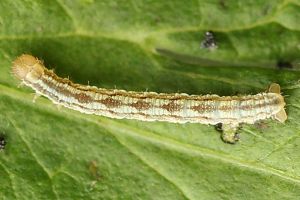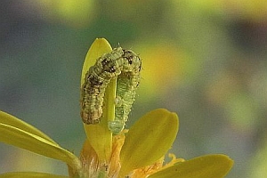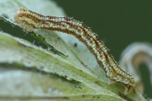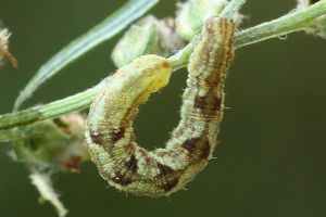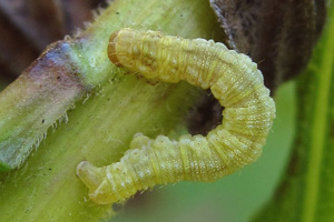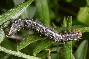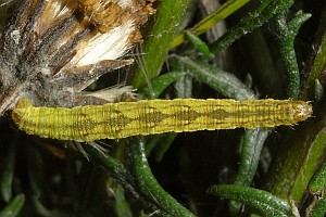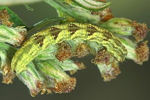 16: Deutschland, Niedersachsen, Region Hannover, Lehrte, Bahnhof, 80 m, Raupe an Solidago virgaurea (Goldrute), 2. Oktober 2013 (cult. ad imaginem, det. & Freilandfoto: Tina Schulz)