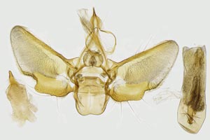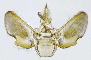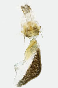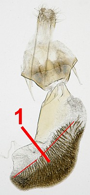 - durch das extrem schräg liegende, fast in der Längsachse der Bursa orientierte Dornenfeld (1) mit keiner mitteleuropäischen Art zu verwechseln. (ähnlich nur die mediterrane E. senorita)