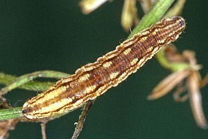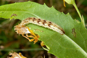 1-3: Deutschland, Sachsen-Anhalt, Mittelharz, südwestlich Trautenstein, Dammbachtal, 470 m, halbschattig am Wanderweg unter Randfichten, 4 Raupen im L4 Stadium an Gewöhnlicher Goldrute (Solidago virgaurea) am 30. September 2012, 20. Juli 2013 (leg., cult. ad imaginem, det. & Fotos: Bernd-Otto Bennedsen)Forum