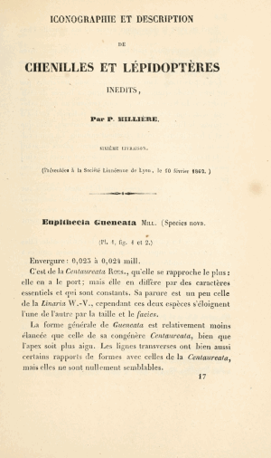 - Erstbeschreibung: Millière, P. (1862): Iconographie et description de chenilles et lépidoptères inedits 1 (6): 257-280, pl. 1-4.