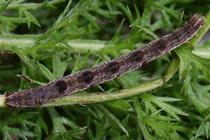 1: Dänemark, Grenaa, 10 m, 2 km von der Küste, Fuglsang Heide, Raupen an Achillea millefolium, 19. Oktober 2013 (fot.: Kjeld Brem Sørensen)