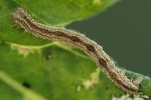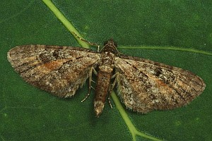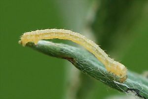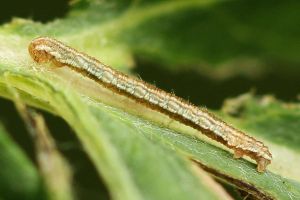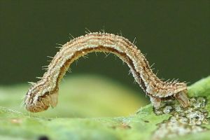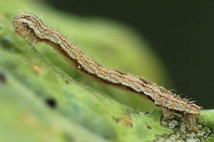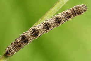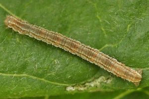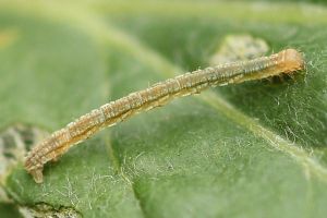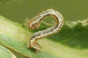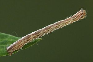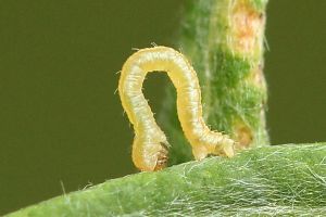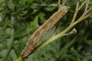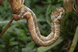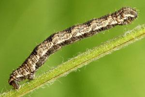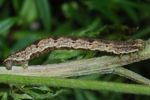 Die Raupen von Eupithecia icterata und Eupithecia succenturiata sind weder habituell zu unterscheiden noch anhand der Pflanze, an der sie gefunden werden [Dieter Fritsch].