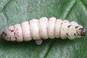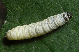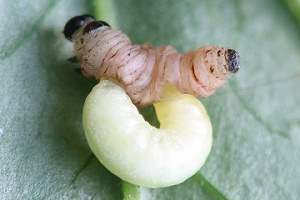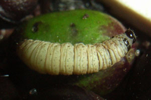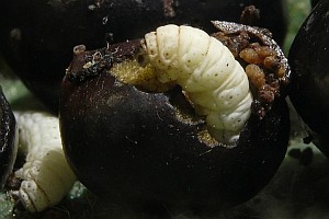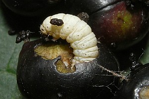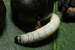 Die Raupe lebt in den Beeren des Christophskrauts.