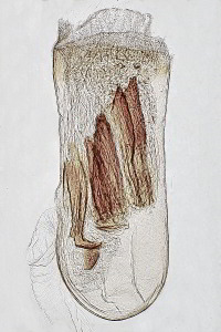 - zentraler Bereich häutig mit Falten und Riefen (3)