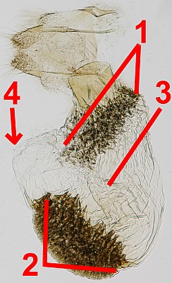 Die ♀ Genitalien sind durch folgende Merkmale unverwechselbar: