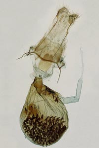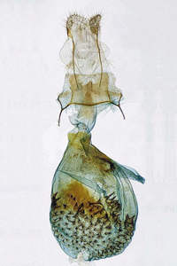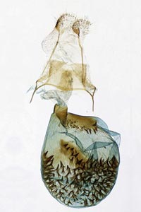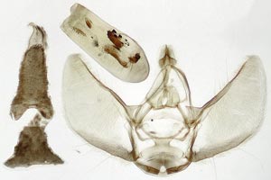 Eupithecia intricata gehört zu den Arten mit abgerundeter Ventralplatte (1). Näheres siehe [hier] unter Diagnose.