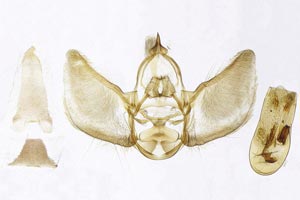 ♂ Genitalien sehr ähnlich jenen von E. satyrata. Unterscheidbar v.a. anhand der Form der Ventralplatte: