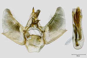 1-2: ♂, Genital & achtes Sklerit, Spanien, Kanarische Inseln, Lanzarote, Haria, Finca La Fuentecilla, Ortsrand, kultivierte Trockensteppe, 340 m, 24. Februar 2020, am Licht (leg., det., präp. & fot.: Hartmuth Strutzberg)Forum