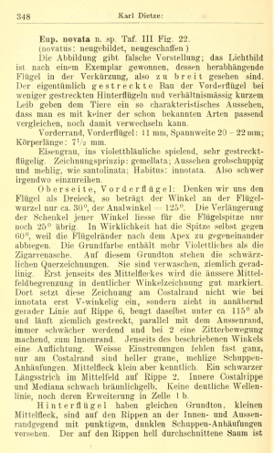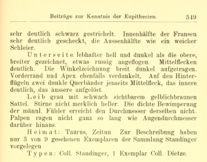 - Erstbeschreibung: Dietze, K. (1904): Beiträge zur Kenntnis der Eupithecien. — Deutsche Entomologische Zeitschrift Iris 16 (2): 331-387, pl. III-V.