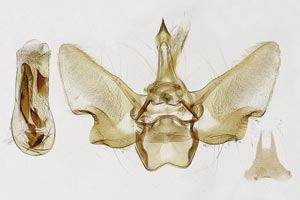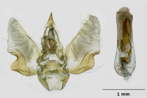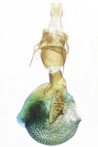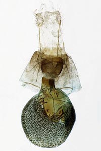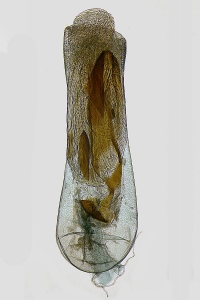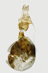 • der sklerotisierte, dornenlose Bereich (1) greift zungenartig in den bedornten Teil des Corpus bursae hinein