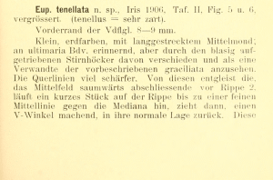 - Erstbeschreibung: Dietze, K. (1906): Beiträge zur Kenntnis der Eupithecien. — Deutsche Entomologische Zeitschrift Iris 19 (2): 55-67, pl. I-IV. Dresden.