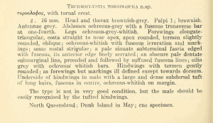 - Original description: Turner, A. J. (1942): Fragmenta Lepidopterologica. — Proceedings of the Royal Society of Queensland 53: 61-96. Brisbane (A. H. Tucker).