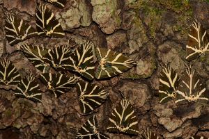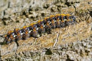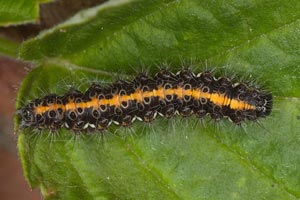 Die halberwachsenen Raupen von Spiris striata und Euplagia quadripunctaria sind verwechslungsgefährdet, wenn man sie nur von oben betrachtet; Hinweise zur Unterscheidung: [Thomas Fähnrich im Forum].