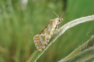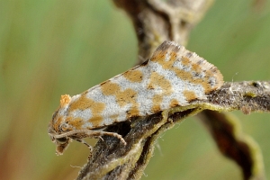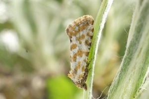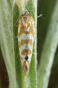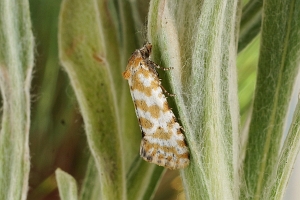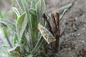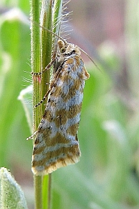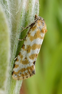 Eupoecilia cebrana ist von Ende April bis Mitte Mai an sandigen trockenen Stellen, in nur einer Generation, um die Raupennahrungspflanze Sandstrohblume (Helichrysum arenarium) anzutreffen. [Friedmar Graf]