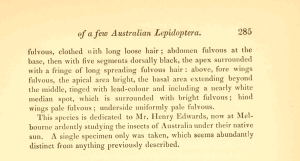 - Original description: Newman, E. (1856): Characters of a few Australian Lepidoptera, collected by Mr. Thomas R. Oxley. — The Transactions of the Entomological Society of London. New series 3 (8): 281-300, pl. XVIII.