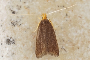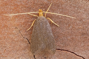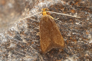 Noch unbekannt! Joannis (1909: 803-804) versuchte es mit einer ex-ovo-Zucht, bei der die Räupchen am 6. Juli schlüpften, die letzte Raupe aber Ende Oktober abstarb. Aus seinen Beobachtungen wurde klar, warum die Raupen dieser Art - aber wohl auch die aller anderer Arten der Familie Lecithoceridae - im Freiland noch nie bewusst gefunden wurden - sie leben am Boden zwischen abgefallenen Blättern und sind detritophag: "Ces chenilles sont poilues, très luciphuges, assez vives, elles ont des pattes membraneuses grêeles et assez longues, translucides. Elles doivent donc vivre à terre dans les bois, parmi les feuilles mortes qu'elles collent ensemble au moyen de quelques fils. On conçoit dès lors la difficulté qu'il y aurait à les trouver dans leur habitat naturel."