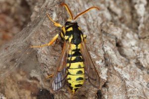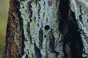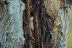 Anders als bei Sesia apiformis finden sich die Raupen und Ausschlupflöcher auch in Brust- bis Augenhöhe an den Pappeln (Populus spec.). (Text: [Frank Rämisch])