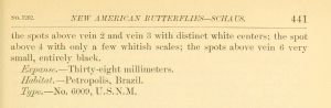 - Erstbeschreibung: Schaus, W. (1902): Descriptions of new American butterflies. — Proceedings of the United States National Museum 24: 383-460. — Digitalisat auf biodiversitylibrary.org: [440]