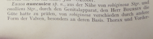 - Erstbeschreibung: Draudt, M. (1936): Neue Arten und Formen von Noctuiden. — Entomologische Rundschau 53: 457-462, 465-471, 490-493, pl. V.