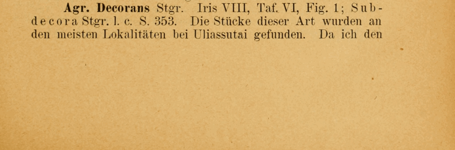 - Agrotis decorans Staudinger, 1897 [Originalkombination]