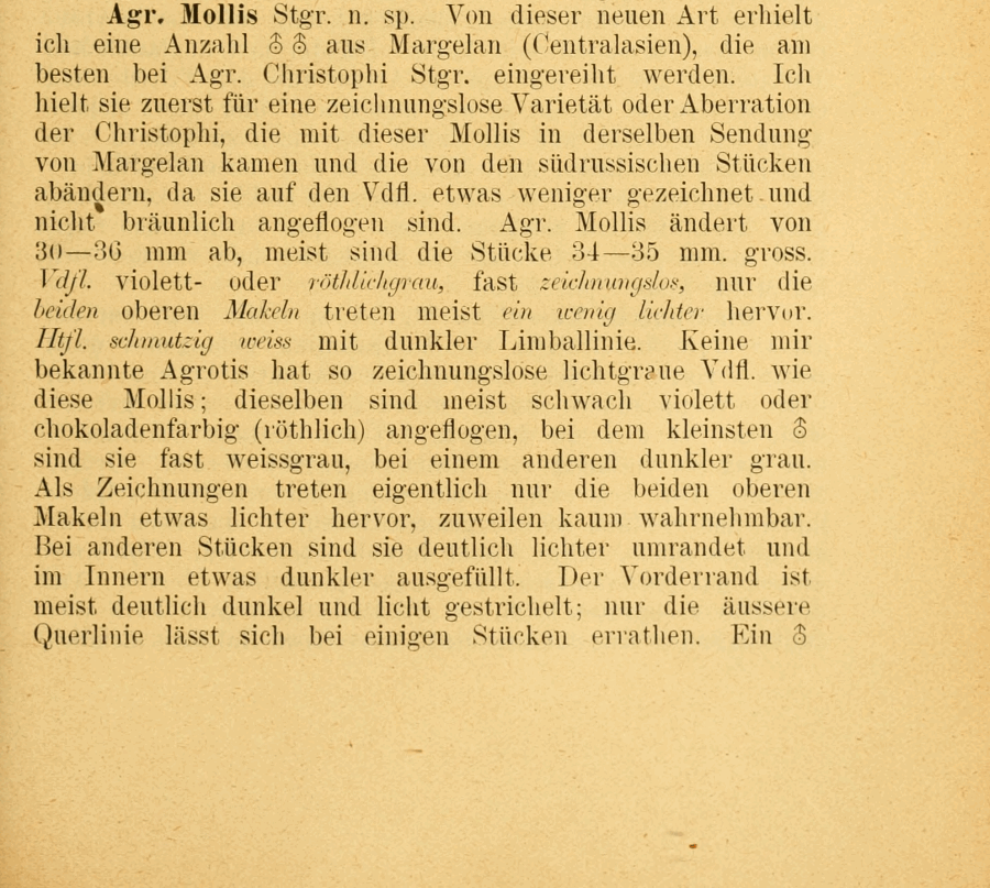 2.2. Beschreibung als Agrotis mollis (nomen praeoccupatum)