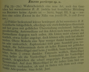 - Erstbeschreibung: Brandt, W. (1938): Beitrag zur Lepidopteren-Fauna von Iran. Neue Gattungen, Arten und Formen (Macrolepidoptera.). — Entomologische Rundschau 55: (43/44) 497-505, (45) 517-523, (47) 548-554, (48) 558-561, (49) 567-574, (50) 584-588, (51) 597-602, (53) 616-621, (54) 632-634, (57) 671-675, (59) 698-699, (60) 701-702, pl. III-V. Stuttgart (Alfred Kernen Verlag).