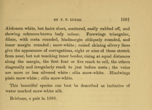 - Original description: Lucas, T. P. (1890): On Queensland and other Australian Macro-Lepidoptera, with localities, and descriptions of new species. — The Proceedings of the Linnean Society of New South Wales. Second series 4 (4): 1065-1099. Sydney (F. Cunninghame & Co.).