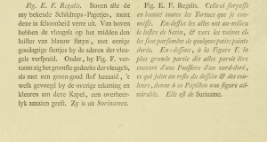 - Erstbeschreibung: Cramer, P. („1779“) [1775-1776]: De uitlandsche kapellen voorkomende in de drie waereld-deelen Asia, Africa en America 1: I-XXX, 1-155, pl. I-CXVI. Amsteldam (S. J. Baalde), Utrecht (Barthelemy Wild).