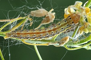 3: Deutschland, Sachsen, Pirna, linkes Elbufer, ruderale trockene Ufervegetation auf Kopfsteinpflaster, Raupen in einem Gespinst am Ende eines Seitensprosses von Sisymbrium loeselii, 20. Juni 2008 (Franziska Bauer), leg., cult. & det. Franziska BauerForum