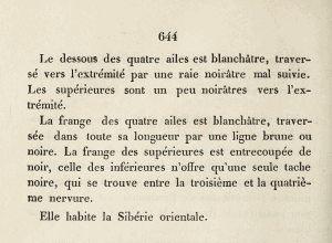 - Erstbeschreibung: Eversmann (1851): Description de quelques nouvelles espèces de Lépidoptères de la Russie. — Bulletin de la Société impériale des naturalistes de Moscou 24 (2): 610-644. Moscou (W. Gautier).