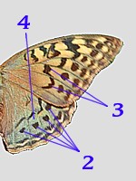 4 - braunrote bis violette Grundfärbung im Außenbereich der Hinterflügel