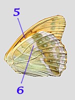 5 - grünliche bis gelbliche Grundfarbe im Innenbereich der Hinterflügel