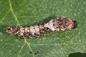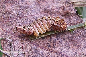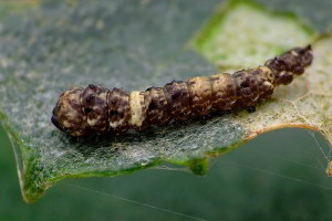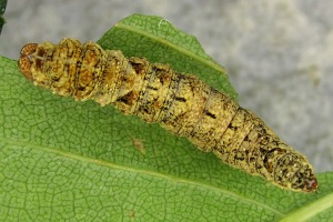 10-12: Dänemark, Jütland, Grenaa, 10 m, 2 km von der Küste entfernt, in einer Plantage an Birke Betula pendula in 1 m Höhe, Länge der Raupe 15 mm, Tagfund, 1. Oktober 2013 (det. & Freilandtoto: Kjeld Brem Sørensen)Forum