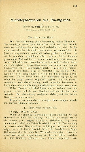 Fuchs, A. (1881): Microlepidopteren des Rheingaues. Zweiter Artikel. — Entomologische Zeitung 42: 451-470. Stettin. [nach Copyright-freien Scans auf www.biodiversitylibrary.org]