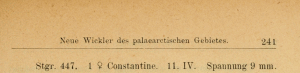 - Erstbeschreibung: Kennel, J. (1901): Neue Wickler des palaearctischen Gebietes aus den Sammlungen der Herren O. Staudinger und A. Bang-Haas. Deutsche Entomologische Zeitschrift Iris 13 (2): 205-305.