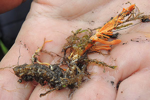 4: Cordyceps militaris (Puppen-Kernkeule, Ascomycota, Schlauchpilz) auf vermutlich einer Präpuppe: Deutschland, Nordrhein-Westfalen, Bochum-Laer, Obstwiese an der Schattbachstraße, Glatthaferwiese, zweischürige Mahd, 110 m, 17. Oktober 2021 (Freilandfoto: Armin Jagel)Forum