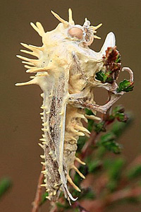 5: Isaria farinosa (Ascomycota, Schlauchpilz) auf einer Puppe von Panthea coenobita: Deutschland, Bayern, Landkreis Bad Tölz/Wolfratshausen, Spatenbräufilz, 640 m, Raupe leg. 11. August 2021, Tagfund an Fichte oder Kiefer, Zuchtfoto 22. April 2022 (leg. Matthias von den Steinen, det., cult. & Studiofoto: Annette von Scholley-Pfab), det. Schlauchpilz [Thorben in Pilzforum.eu]Forum