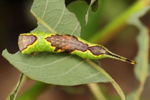2: Raupenfund an junger Espe (Populus tremula): Deutschland, Niedersachsen, Deister, Umgebung Barsinghausen, 140 m, 22. Juli 2015 (det. & fot.: Tina Schulz, conf. Thomas Fähnrich)Forum
