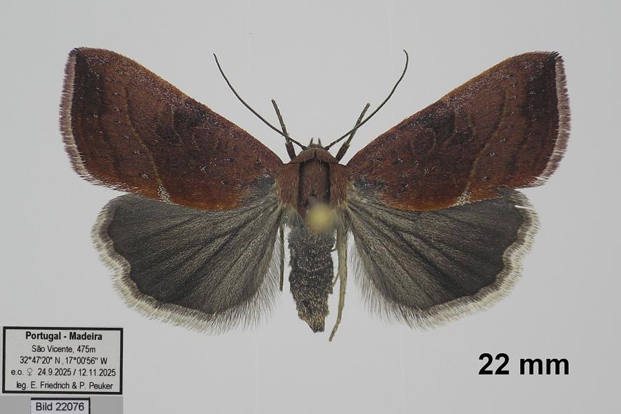 13: ♂, Portugal, Madeira, São Vicente, 475 m, e.o. Zucht, Weibchen: 24. September 2025 Lichtfang (det. & fot.: Egbert Friedrich)